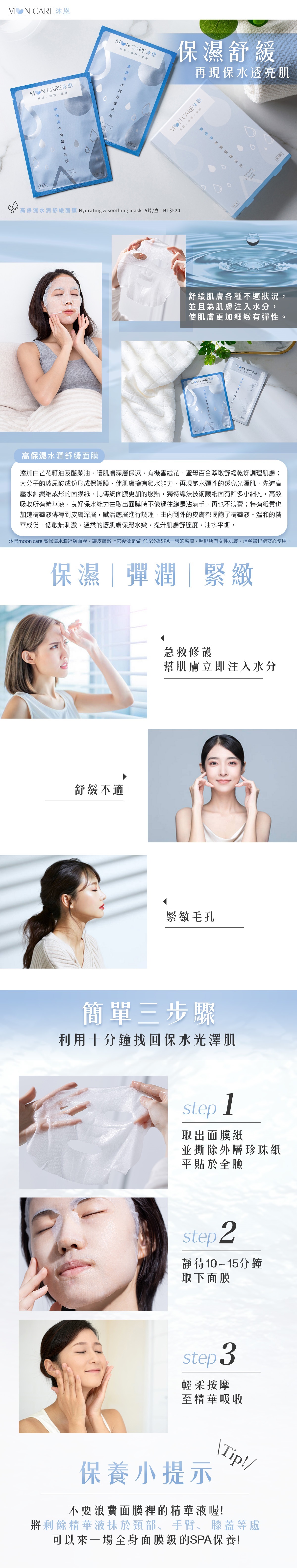 •高保濕水潤舒緩面膜(一盒五片)